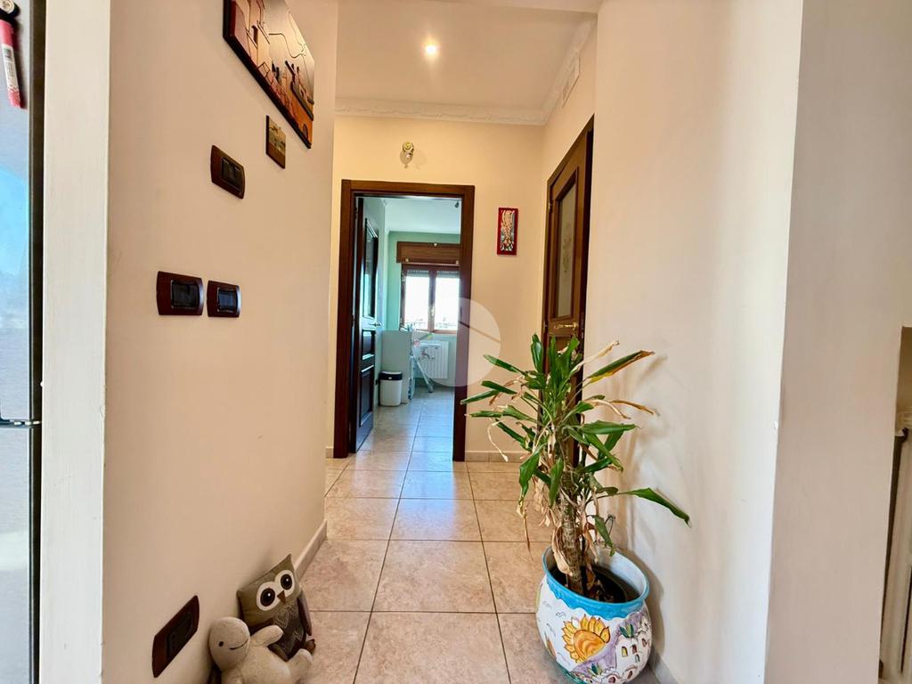 L’ingresso si apre su un comodo disimpegno che introduce alla zona giorno, dove troviamo un ampio salone living con cucina a vista, ideale per chi ama gli ambienti moderni e conviviali.