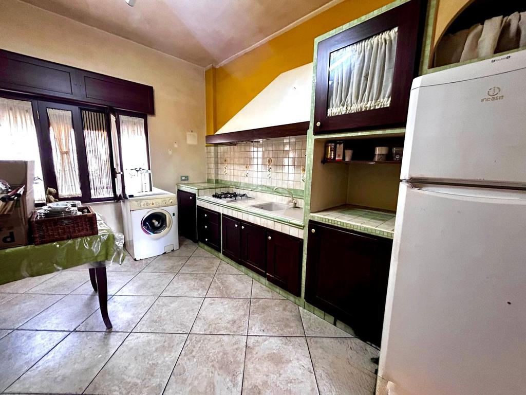 La zona giorno comprende una cucina in muratura, pratica e dal gusto tradizionale, ben organizzata negli spazi